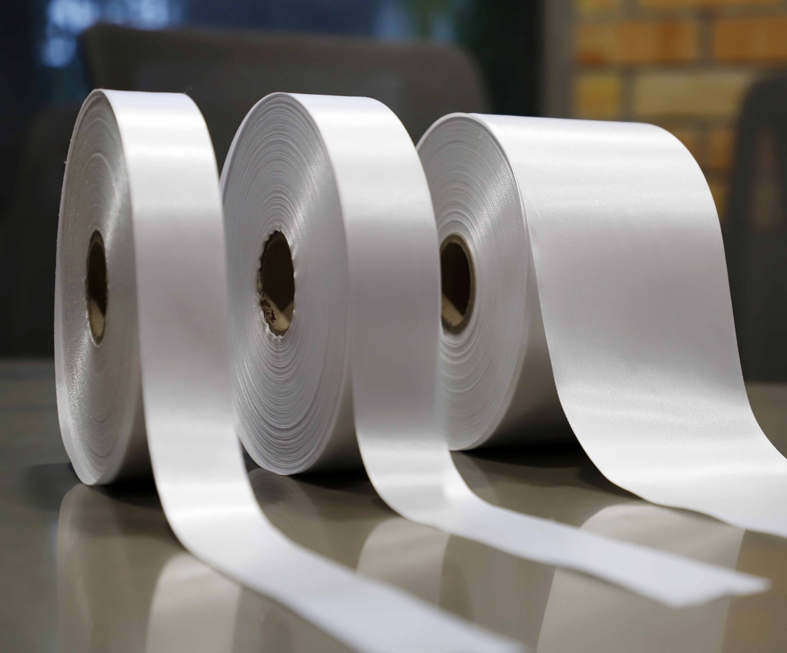 Slit edge satin ribbons are Made from satin fabric and then slit into different sizes starting from minimum of 3/8”.